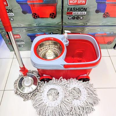 FREE EXTA MOP (FITA) 2 PCSSpin mop with bucket, featuring a 360-degree rotating mop head for effective cleaningKey Features:Includes a durable handle, a bucket with wheels for easy mobility, and a drain systemComponents:The set typically includes the bucket, mop handle, and at least one microfiber mop head refill. Capacity:The mop bucket has an approximate capacity of 20 liters.